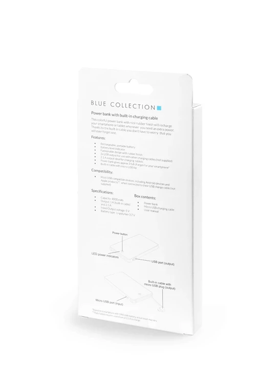 VIVID 4000 mAh elektripank on kaasaegne reklaamkingitus, mis ühendab endas funktsionaalsuse ja esteetika, pakkudes praktilist kingitust klientidele ja äripartneritele. Tänu õhukesele disainile ja kummeeritud pinnale on seade mitte ainult käepärane, vaid ka meeldiv katsuda. Integreeritud mikro-USB-kaabel ja täiendav USB-port võimaldavad laadida korraga kahte seadet, mis suurendab selle kasutatavust igapäevases kasutuses. Lisaks sellele võimaldab tähevärviline UV-trükk elektripanga pinnal tõhusat brändi reklaamimist.